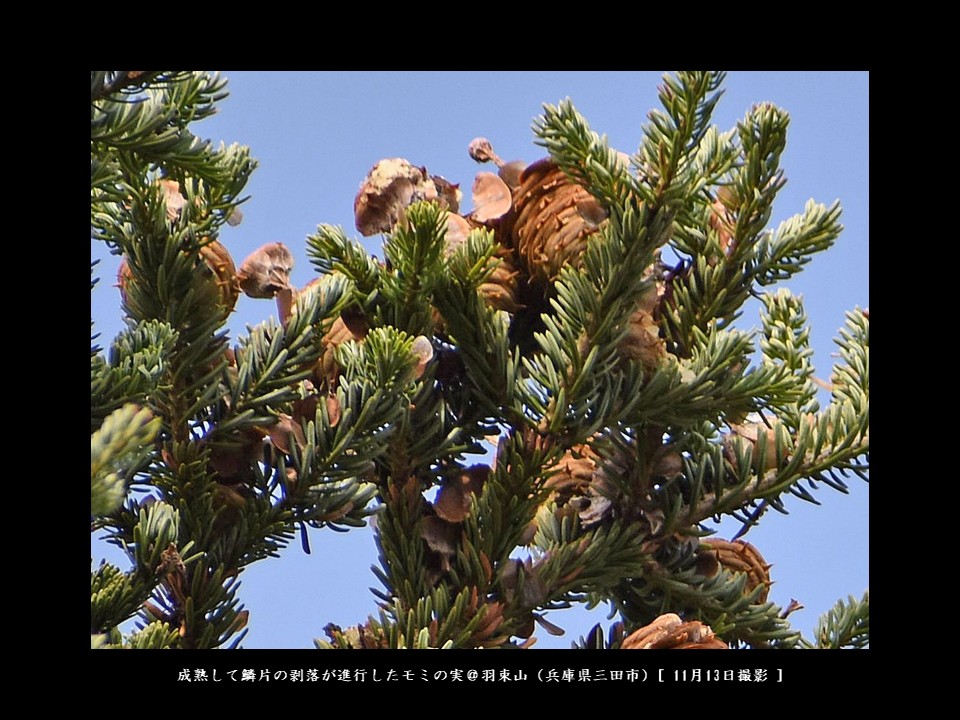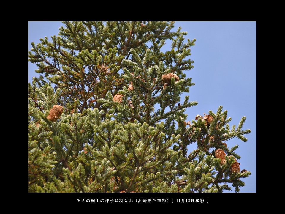 私のエビフライハンティングエリアの一つである羽束山には、中腹から山頂にかけてたくさんの大きなモミの木があります。