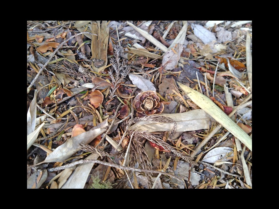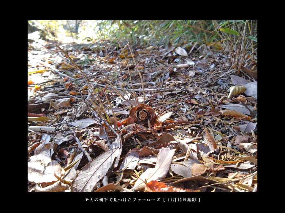 ところが、11月になって齧り取った鱗片の纏まりを頻繁に見かけるようになると、それらの中に本来自然にできるファーローズと同じ形のものが残っていることに気づきました。同じマツボックリでもリスがモミの実を食べると、その残骸はエビフライではなく、ファーローズになっちゃうんですね☆