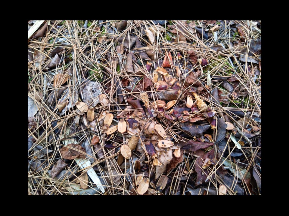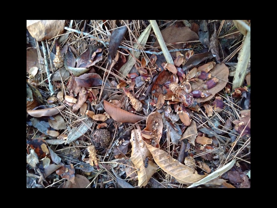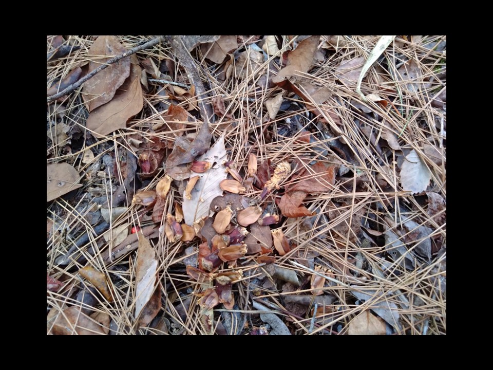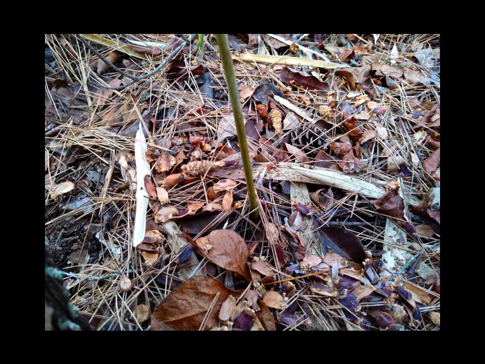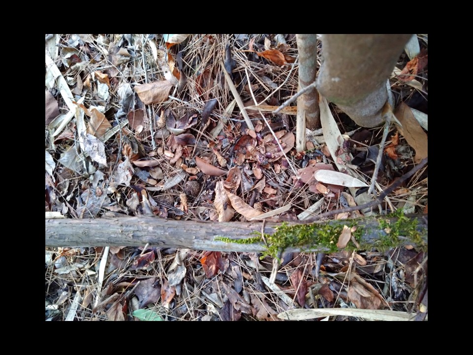ただ、今のところリスを魅了する健全なアカマツの周辺には、これまで通りたくさんのエビフライが認められます。一例として、ほぼ一年を通してリスに人気のある有馬富士公園の個体 [ No.74で紹介 ] の周辺の様子を撮影したものを紹介します。