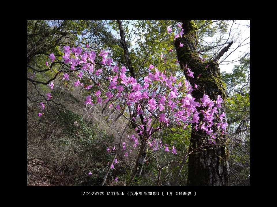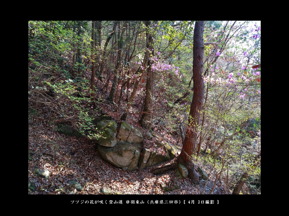羽束山の登山道沿いに立つアカマツの周辺で、ツツジの花が咲きました。