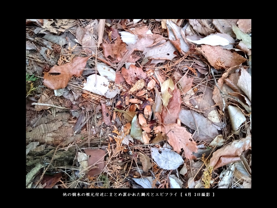 さらに、数メートル離れた杉の木の下にもエビフライが〜♪♪♪