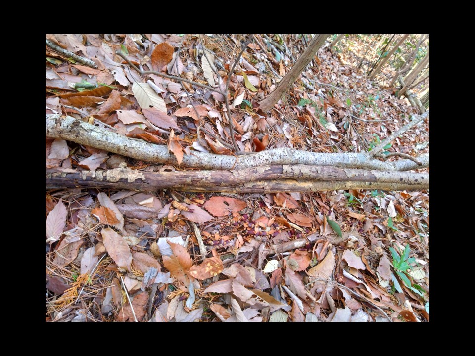 この個体のすぐそばに立つコナラの木の下で、途中で食べるのを止めた放棄品を発見〜♪♪