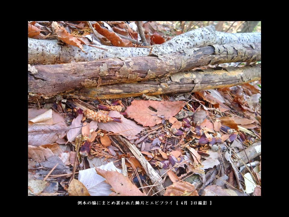 木の根元だけでなく、この個体のそばに横たわる倒木の辺りにも、たくさんのエビフライがありました☆